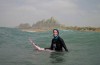 یک موج سوار زن ایرلندی با لباس طراحی شده شنا برای زنان مسلمان در سواحل چابهار در استان سیستان و بلوچستان موج سواری کرد.